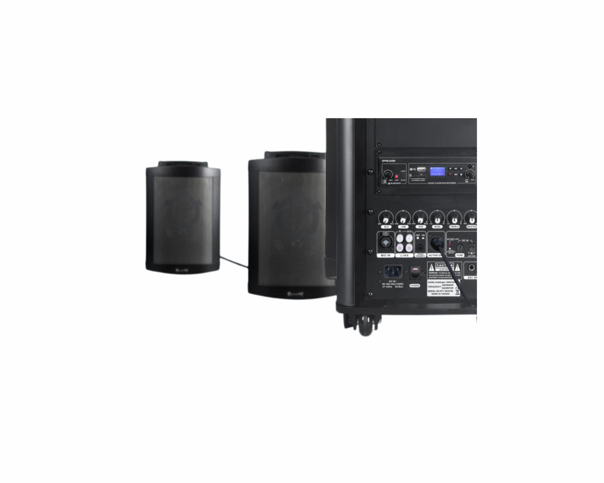 • Wireless Microphones: Includes 2 wireless mics, ideal for announcements, speeches, or live commentary.