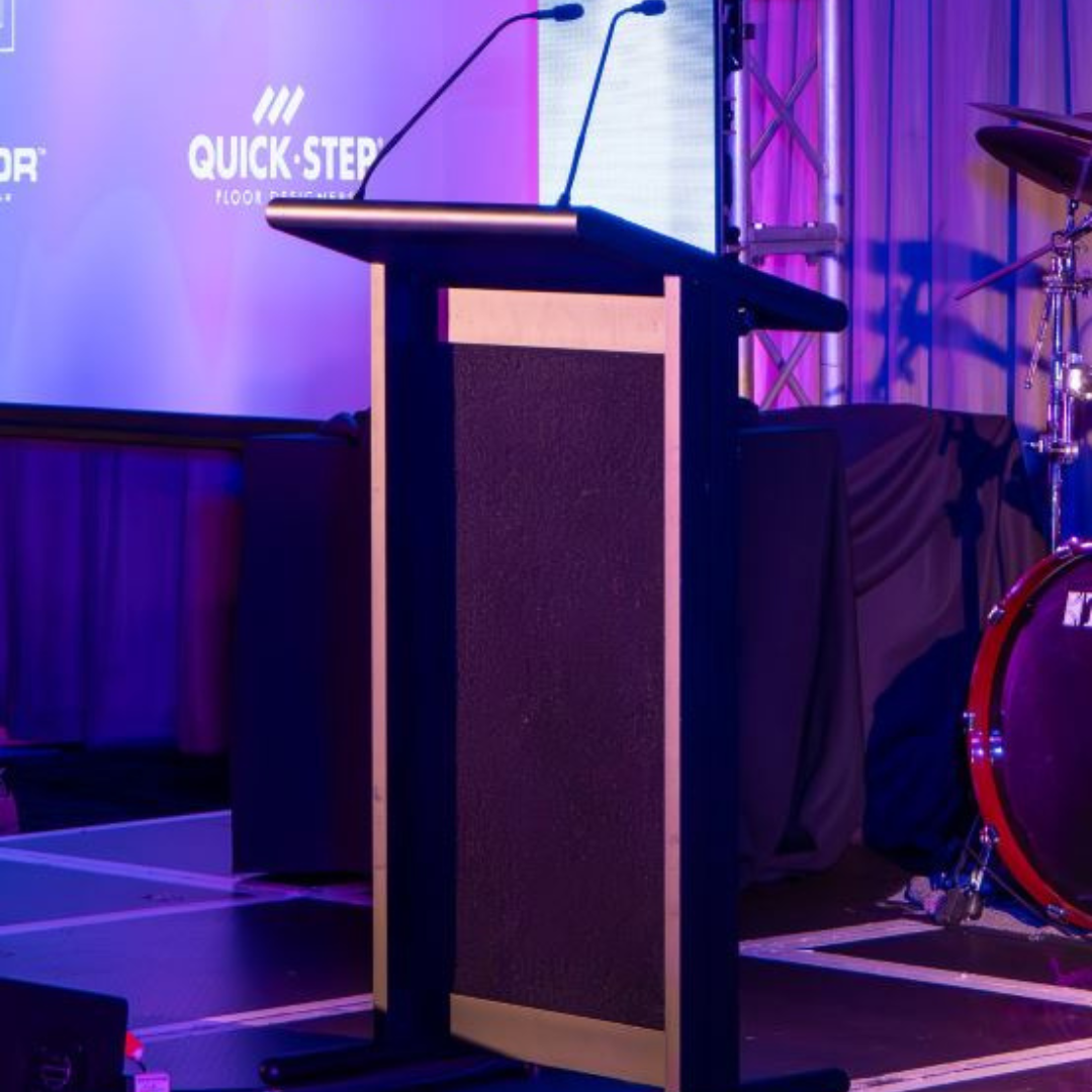 A lectern may not be your first thought for an event, but besides providing a landing point for presenters to place their notes a lectern can become an integral and important part of your stage design.