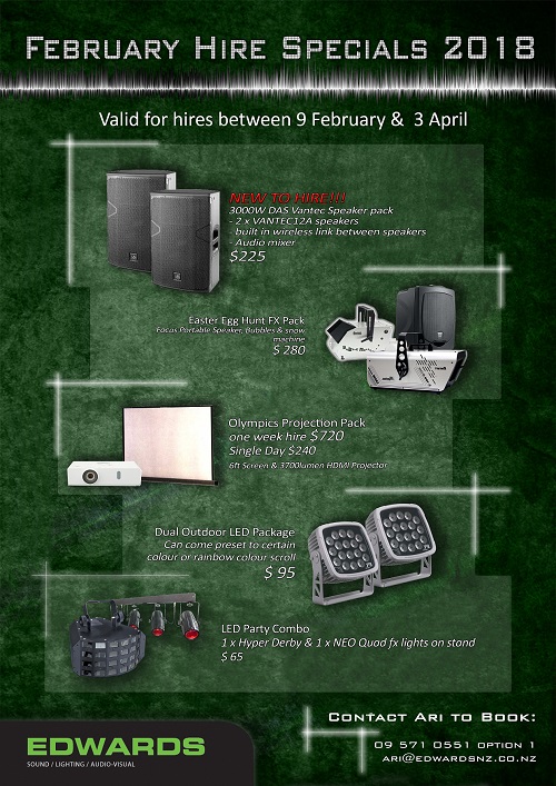 Summer's Not Over Yet - Planning an Event? Talk to Edwards Hire about our End of Summer Specials. Everything that you could need for an outdoor party - DAS Vantec Speakers, Data Projector and Screen, Lighting plus Special Effects to take your Easter Egg Hunt to the next dimension...