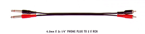 Dual RCA to dual mono 6.3mm (1/4 inch) Jack plugs, 3 meter cable