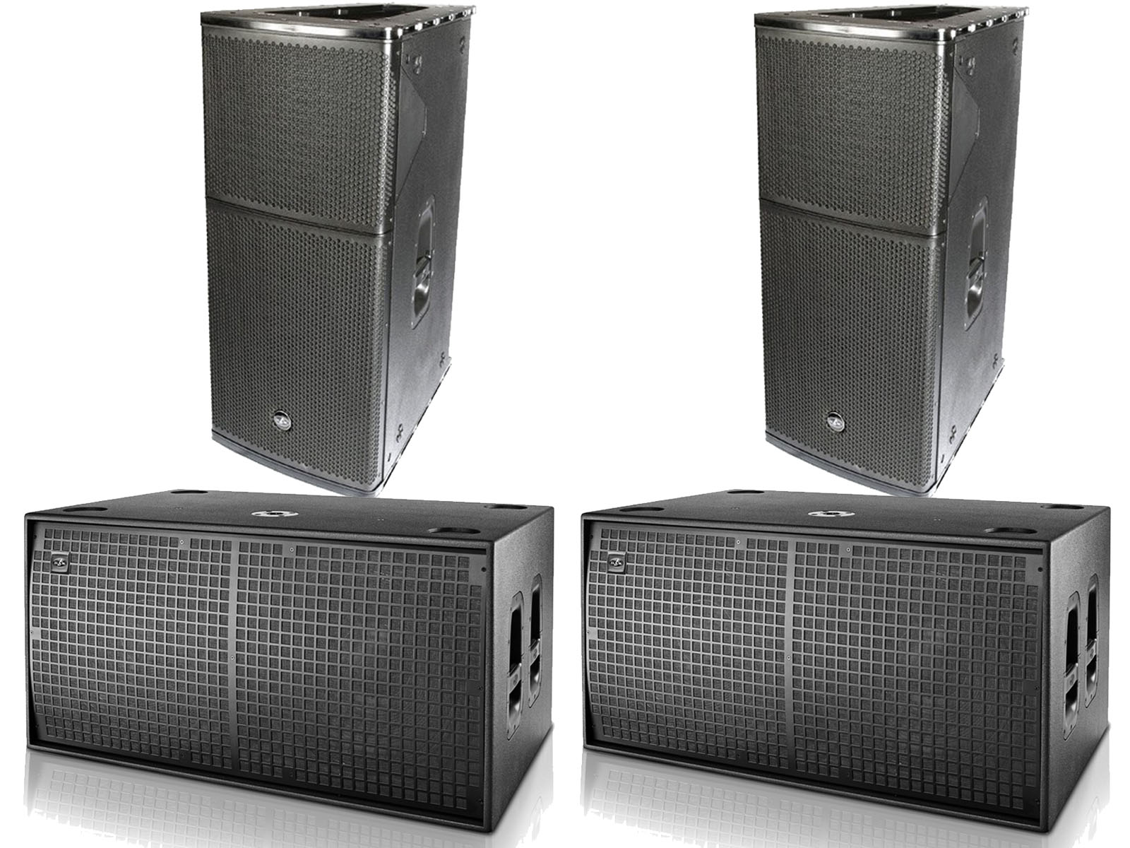 The package consists of a pair of the famous DAS Audio Convert 15A 2000w Speakers (90 deg) (3 channel Class D Amps) , and a pair of the Acclaimed DAS Audio EVENT-218A active subwoofers.