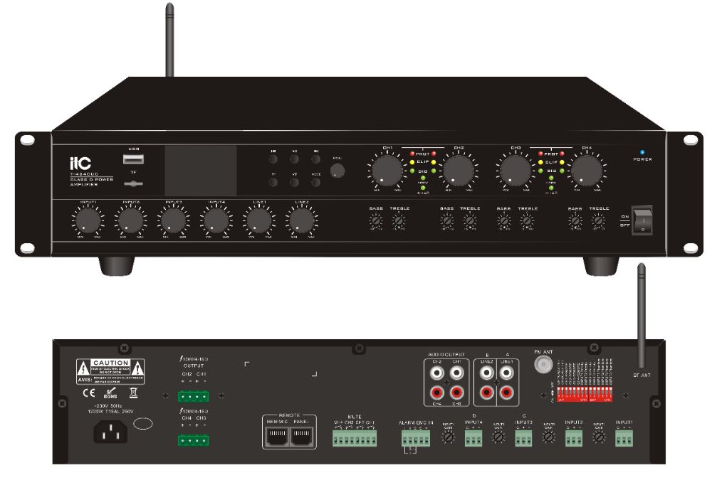 4-channel x 240w matrix amplifier for high-quality audio reinforcement equipment at an affordable price. The UC series amplifiers provide 4ohm and 100V line outputs, and offer multiple useful features including Bluetooth and USB media player, and each output channel has separate bass and treble control. Suitable for clubs and bars, stadiums, shopping centers and other venues and requirements for high quality, multi-channel audio power amplifiers.Matrix setup adjustable via the OLED screen and function buttons.