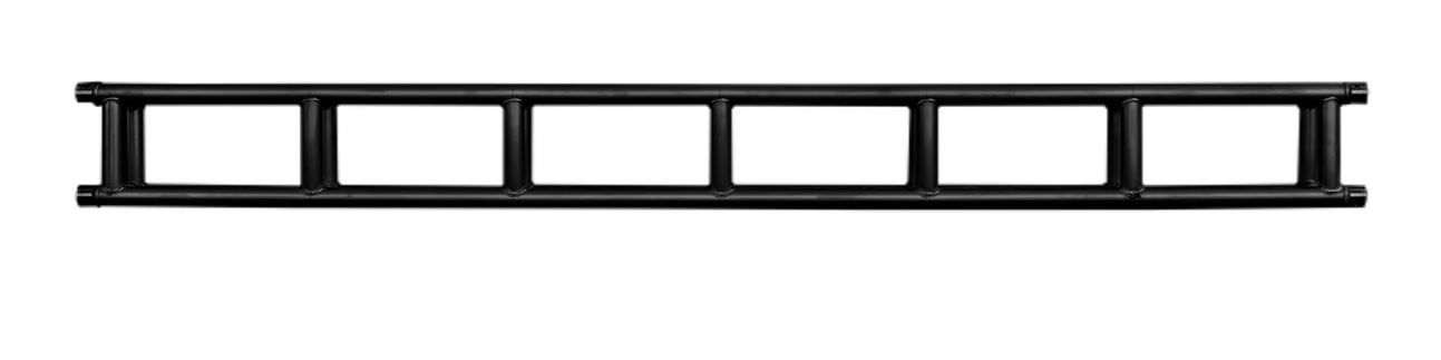The truss features 2mm wall thickness for added durability and can be used to support lighting rigs, sound systems, and other stage equipment. It is powder-coated black for a sleek finish and to blend seamlessly into most stage or event environments.