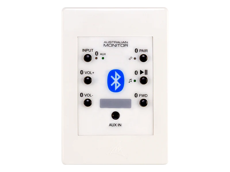 The WPBT is a programmable Bluetooth® audio receiver and auxiliary input wall panel. Featuring Bluetooth pairing and media controls as well as a source selector.