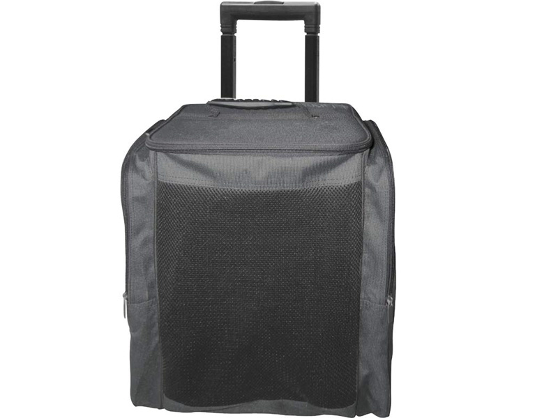 Carting your StagePro portable PA from here to there. the picture shows a trolley handle at the back - this is not included with this version of the bag - they only weigh 13kg so you can carry it easily.