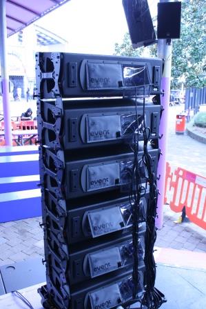 12 x DAS Event 208A line array modules 1 x DAS DSP-2060 digital audio processor 1 x DAS Vantec-215A Dual 15” Active speaker 1 x Soundcraft SIE1 digital audio mixing console Shure microphones |