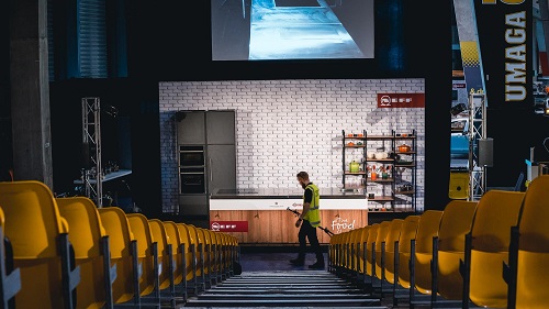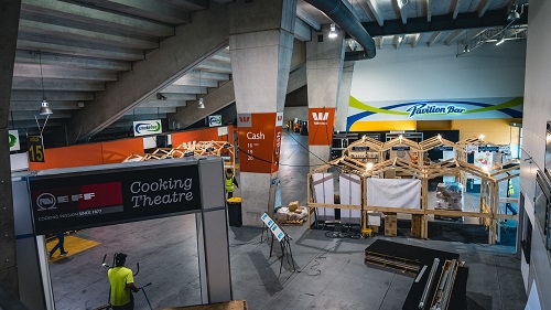 Edwards setting up to record the chef's demonstrations at the Auckland and Wellington Food Shows. Our team are a polished team of professionals who let the chefs do their thing whilst we are busy in the background.