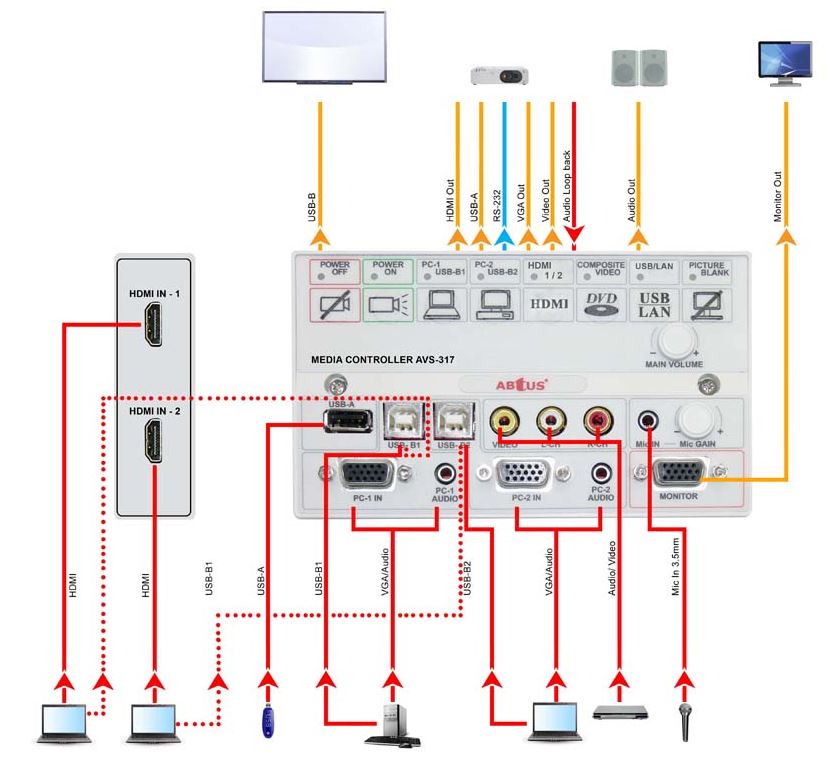 The AVS-317 Media Control Panel is one of the most user friendly and installer friendly unit that is specifically designed for an easy and central control of any AV projection system with USB interactive connectivity.