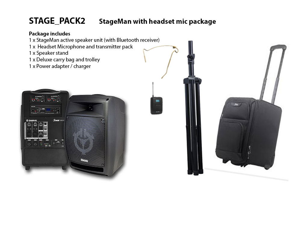 We take the StageMan amplified speaker and add a wireless headset microphone.